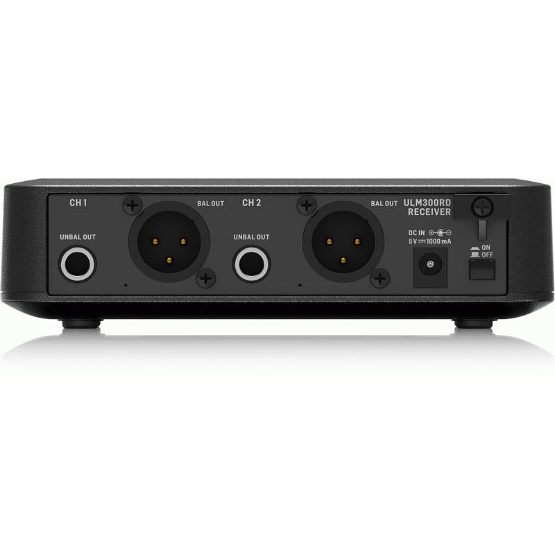 Our state-of-the-art transmitter operates in the 2.4 GHz frequency band, which is well out of the way of TV stations and cell phone towers. And since it is digitally encrypted, your signal gets through in all its pristine, high-definition quality, without the random artifacts that often plague other wireless systems. The ULM300RD dual-channel receiver tracks your every move, with a range of up to 200 feet (60 m).