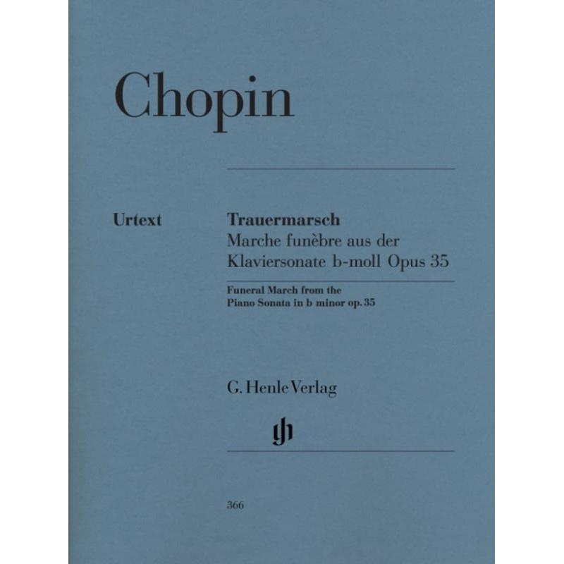 This most famous funeral march in music history is part of a piano sonata, the third movement of Chopin’s op. 35 Sonata in b-flat minor, in which – according to Robert Schumann -- Chopin “brought together four of his most deranged children”. It was not long until the Funeral March – which was written two years before the sonata’s other movements of the sonata – was removed from this context and performed as an independent piece. This is also how it was heard, in an orchestral version, at Chopin’s own funeral in Paris on 30 October 1849. In addition to our edition of the complete op. 35 Piano Sonata (HN 289), we are offering this practical separate issue of the Funeral March in the proven Henle Urtext format.
