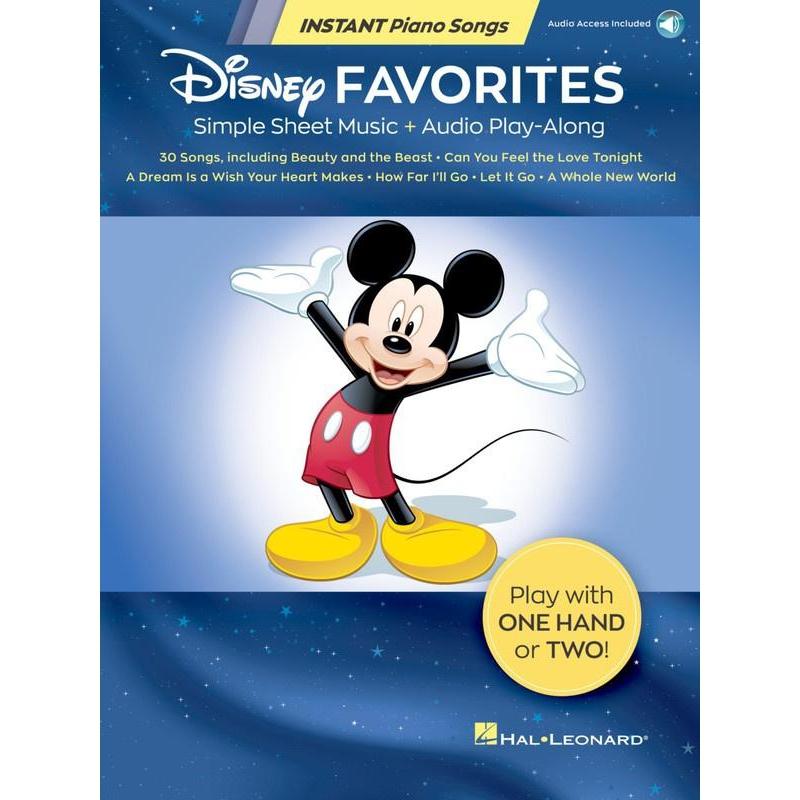 The Instant Piano Songs series will help you play their favorite songs quickly and easily “ whether you use one hand or two! Start with the melody in your right hand, adding basic left-hand chords when you're ready. Letter names inside each note speed up the learning process, and optional rhythm patterns take your playing to the next level. Online backing tracks are also included. Stream or download the tracks using the unique codes inside each book, then play along to build confidence and sound great! This edition includes 30 Disney classics such as: The Ballad of Davy Crockett · Beauty and the Beast · Can You Feel the Love Tonight · Chim Chim Cher-ee · Circle of Life · Friend like Me · How Far I'll Go · It's a Small World · Kiss the Girl · Let It Go · Part of Your World · Remember Me (Ernesto de la Cruz) · That's How You Know · A Whole New World · and more.