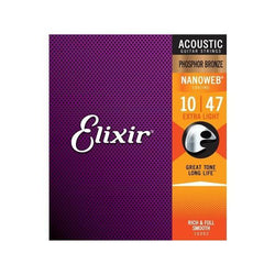 Elixir® Strings Acoustic Phosphor Bronze with NANOWEB®Coating deliver distinctive phosphor bronze warmth and sparkle together with extended tone life.