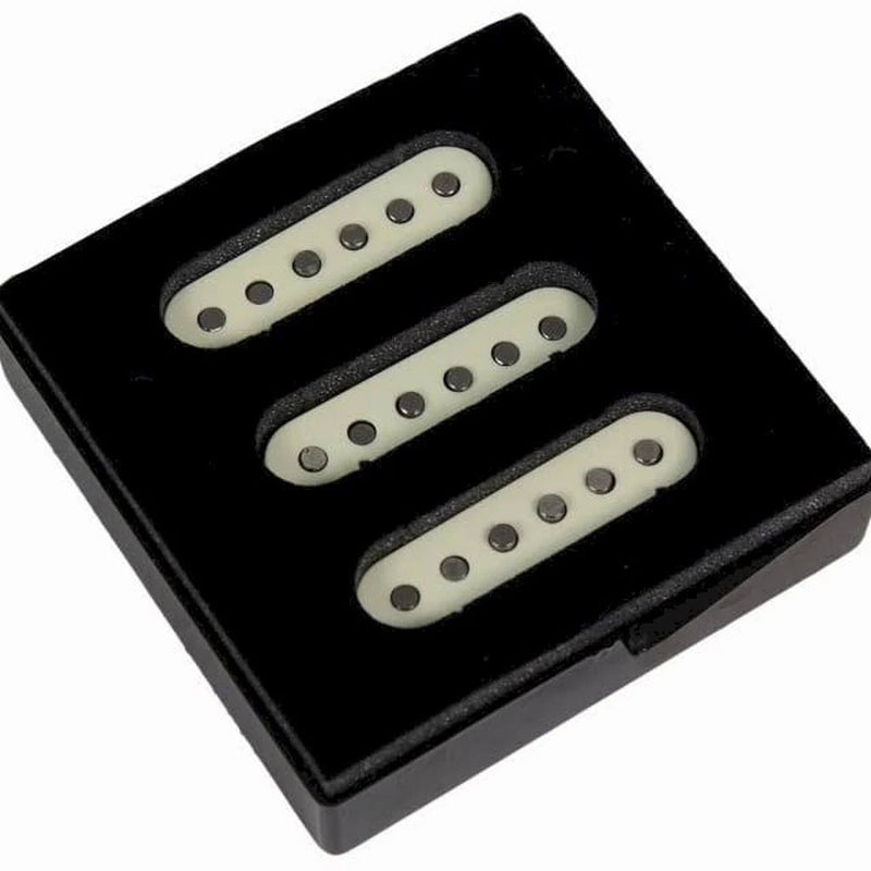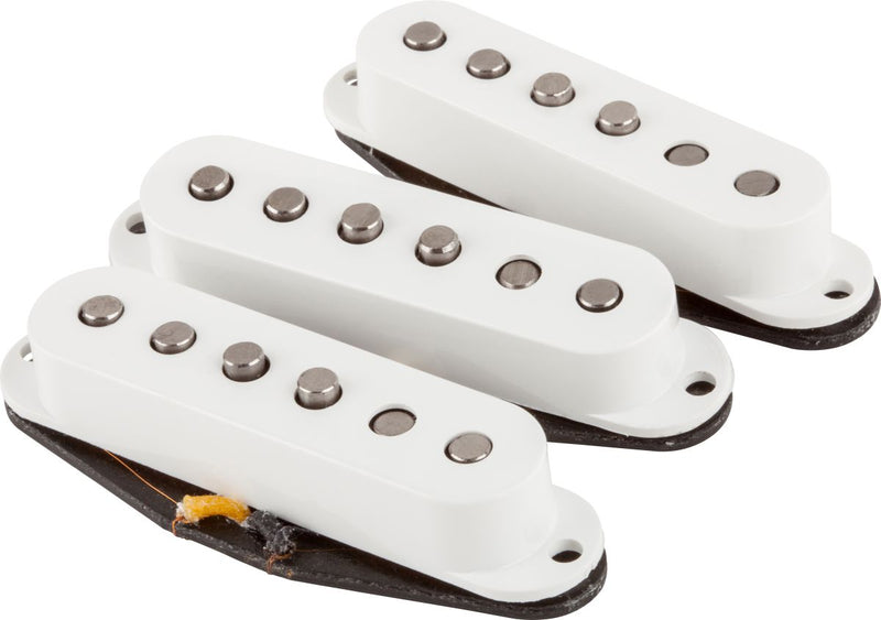 The Fender Fat '50s Strat Pickup Set gives you calibrated pickups constructed with hand-beveled, staggered Alnico V magnets and Formvar magnet wire and they deliver enhanced bass response without the harsh midrange. The middle pickup is reverse wound/reverse polarity for hum canceling in positions 2 and 4.