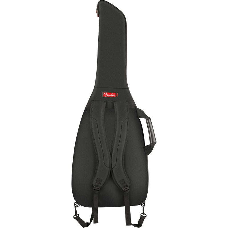 Fender's F610 Series gig bag is a stylish and affordable way to keep your electric guitar safe while traveling. Featuring our iconic asymmetrical Fender shape, its durable outer layer is constructed of tough 600 Denier polyester that protects against impacts while avoiding ripping and tearing. Its interior is filled with 10mm padding and lined with soft touch microfiber that keeps your instrument secure while preventing potential finish damage.The F610 gig bag also comes with a comfortable two-piece handle and ergonomic air mesh backpack straps with easily adjustable ladder lock buckles, so you can comfortably carry your instrument without unnecessary physical strain. Plus, the front storage pocket offers additional storage space for small accessories and a business card window.