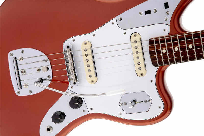 For specially voiced tone worthy of such an inventive and versatile guitarist, this Jaguar is built with "Bare Knuckle" Johnny Marr single-coil custom-wound neck and bridge pickups.