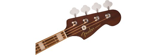 Crafted with an X-braced solid spruce top and sapele back and sides, the compact mid-sized auditorium body of the Kingman™ Bass produces a deep, punchy, and articulate tone and features a cutaway for convenient access to the upper frets. The bound nato neck is elegantly appointed with block inlays and is designed with a slim "C"-shaped Jazz Bass® profile, an easy-to-play short 30" scale length, comfortable 1.5" nut width, and a 4-in-line headstock for a distinctive look born from Fender's electric bass DNA. Other notable details include open-gear vintage-style tuning machines for smooth, accurate tuning, a GraphTech® NuBone® nut and saddle for focused fundamental tone, and a Fishman® Presys preamp system that allows detailed fine-tuning of the bass's amplified sound when performing or recording. A deluxe gig bag is included.
