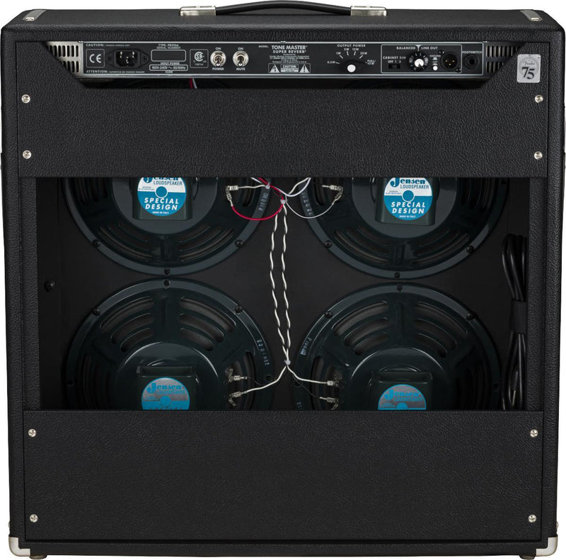 The Tone Master Super Reverb is the magical combination of the mid-60s black panel amplifier circuit and four 10” speakers. It’s got the unique beefy sound of the large 4x10 cabinet, the chime of the Jensen speakers, and an easily driven mid-powered 45W(simulated) amplifier. There’s no mistaking this sound when you plug into it, and now you can lift it easily and set the volume to the venue. With modern features including selectable output power and IR line out, the Tone Master Super Reverb is ideal for stage, studio, or home use.