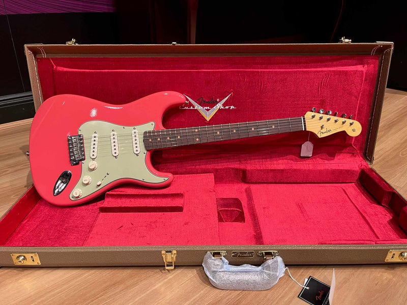 Other features found on this guitar include a 2-piece select alder body, tinted rift-sawn maple neck with '59 "C"-shaped neck profile, 21 medium vintage frets, Custom Shop hand-wound '59 Strat® single-coil pickups, 5-way switch, vintage wiring, 3-ply mint green nitrocellulose pickguard, American Vintage synchronized tremolo bridge, bone nut, wing string tree and vintage-style tuning machines.