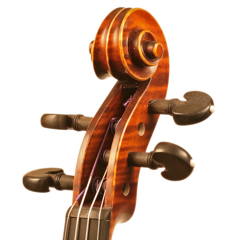 All violins, cellos and violas have factory fittings replaced with quality German strings, German tailpiece and a French bridge to enhance playability and tone.