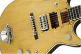 This models features the essential hallmarks of one of rock’s most iconic instruments including “DIY” pickup routes with simulated screw holes, chrome switch plugs, Space-Control™ bridge and ‘60s-style tailpiece. Open-cavity thunder roars from the thin-skin satin finished chambered mahogany body and is magnified by a high-output TV Jones® Power’Tron™ pickup.