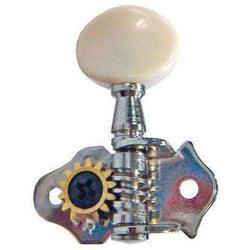 Sta-Tite is a open geared ukulele machine head that comes in a set. Black round detailed buttons. Singles. 2-a-side. Chrome. Blister packed.