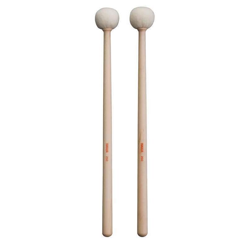 Yamaha offers two different series of timpani mallets. The heads of the 200 series are more rounded than those of the 100 series. Both are offered with three different degrees of hardness.
